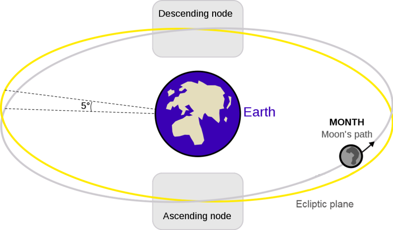 सूर्य, पृथिवी, चन्द्र एउटै रेखामा रहदाँ पृथिवीले सूर्यको प्रकाश छेकिदिन्छ र फल स्वरुप ग्रहण लाग्दछ । त्यसो त प्रत्येक पूर्णिमामा पृथिवी, सूर्य, चन्द्र सरलरेखामा पर्छन् भने प्रत्येक पूर्णिमामा किन ग्रहण लाग्दैन? भन्ने प्रश्न आउन सक्छ । यसको उत्तर स्वरुपः पृथिवी सूर्यको वरिपरि घुम्ने कक्ष र चन्द्रमाको पृथिवी वरिपरि घुम्ने कक्ष एउटै सतहमा नपरि ५ दशमलव १५ डिग्रीको कोणमा ढल्किएका छन (चित्र नं २)। वर्षमा जम्मा दुई पटक मात्र चन्द्र कक्ष र पृथिवी कक्ष ठ्याक्कै मेल खान्छन् । यसै दुईपटक पृथिवी सूर्य र चन्द्रको बीचमा परि ग्रहण हुने गर्दछ ।